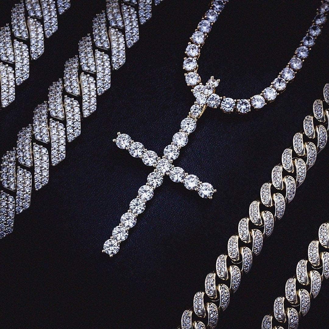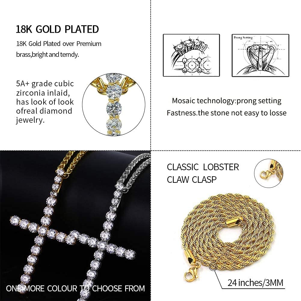 14K Gold Plated Large Nail Cross Chain Iced out CZ Pendant Hip Hop Jewelry for Women with Stainless Rope Chain