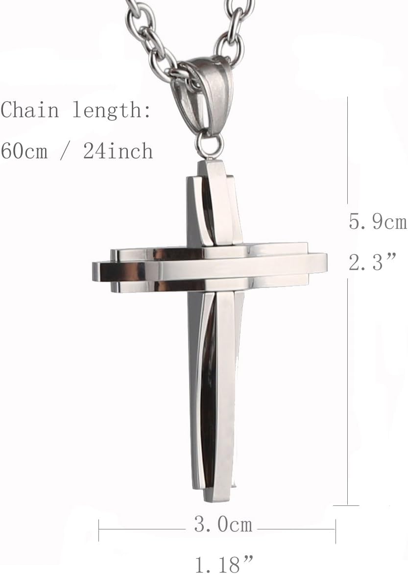 Mens Polished Stainless Steel Silver Cross Pendant Necklace 22+2 Inches Chain