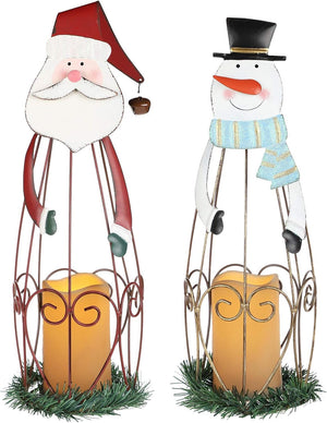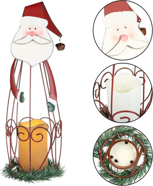 2 Pack Christmas Candle Lantern with LED Lights, Metal Lighted Santa Claus Lanterns for Christmas Holiday Home Decorations