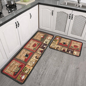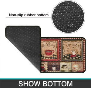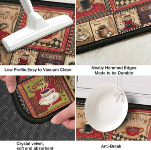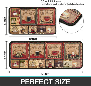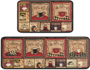 2 Piece Coffee Kitchen Decor Rug Set, Home Kitchen Sink Rugs and Mats Non Skid, 17"x47"+17"x30", Coffee