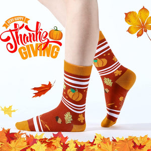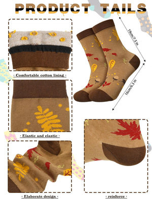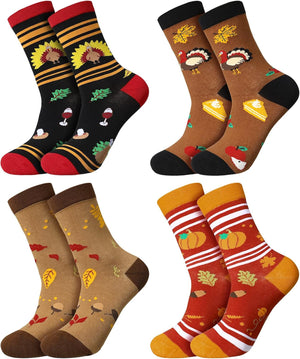 4 Pair Fall Sock Autumn Novelty Sock Thanksgiving Holiday Sock Leaves Pumpkin Turkey Print Sock for Women Girl Gift