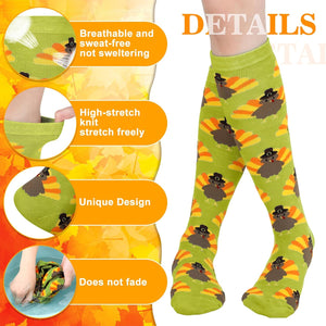 Versatile One Size Fits All: Designed to fit most foot sizes, these one-size-fits-all Thanksgiving socks provide a comfortable and secure wear experience, regardless of leg width or shoe size. Perfect for men and women alike!