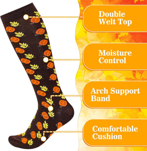 6 Pairs Fall Socks Thanksgiving Compression Socks Autumn Socks for Women Men with Turkey, Maple, 6 Design