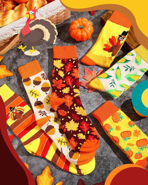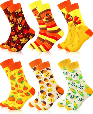 6 Pairs Thanksgiving Socks Autumn Fall Socks Turkey Socks Maple Leaf Pumpkin Socks