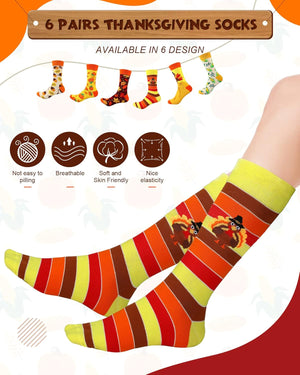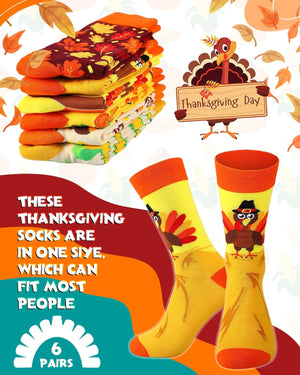 You'll receive 6 pairs of Thanksgiving socks, each in a unique style, offering plenty of options to match your various outfits and personal preferences. These socks are perfect for your Thanksgiving celebrations and beyond!