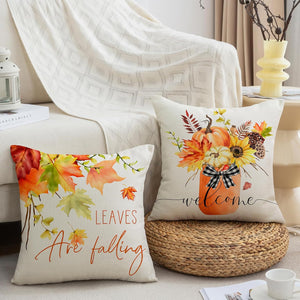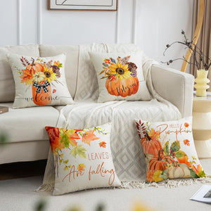Transform your seasonal decor with this delightful set of 4 fall sofa pillow covers. Designed without inserts or stuffing, each cover features a charming autumn pattern on the front and a beige back, making them ideal for quickly refreshing your home’s autumn aesthetic. They also make super cute gifts for family and friends!