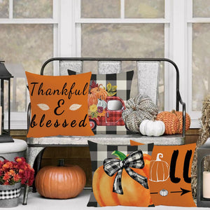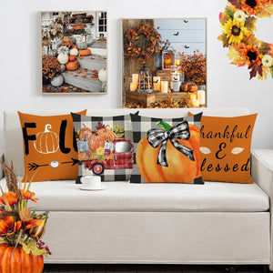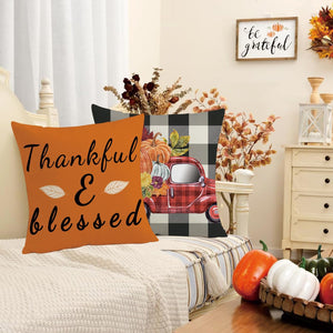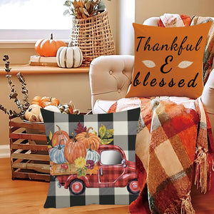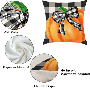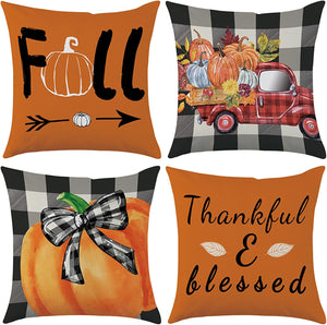Fall Pillow Covers 18x18 Set of 4 Buffalo Check Orange Pumpkin Truck Thanksgiving Farmhouse Pillows Cases