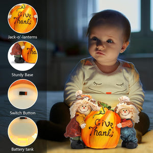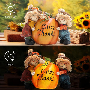 Fall Thanksgiving Resin Scarecrow Pumpkin Figurines - Adorable Scarecrow Embrace Pumpkin Decorations
