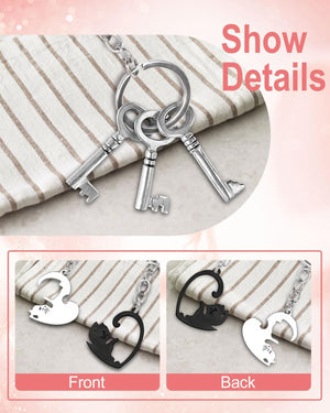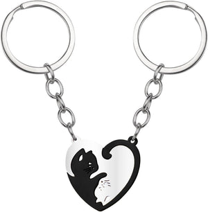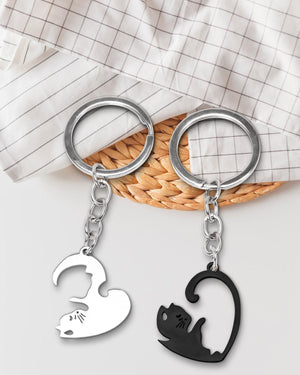 Heart Puzzle Keyrings for Couples, 2 Pcs Stainless Steel Cats, White and Black, Keychains for Him and Her