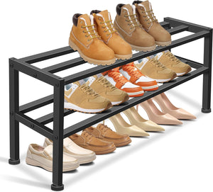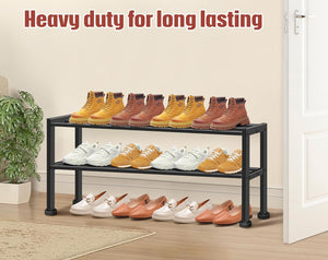 Heavy Duty Shoe Rack for Closet Entryway, Stackable Shoe Organizer for Small Space Metal Shoe Rack, Black