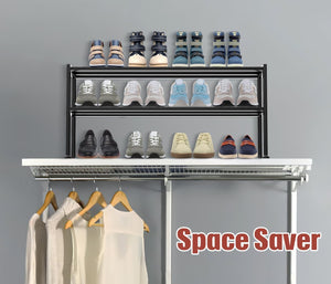 • Stackable & Expandable Design: The black shoe rack is stackable, allowing you to combine it into a 4-tier rack by attaching a second unit, maximizing your storage capacity without taking up additional floor space. It's ideal for creating an organized, clutter-free home.