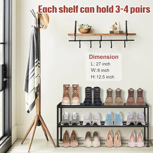 • Compact & Space-Saving: Designed to fit small spaces, each tier can accommodate 3-4 pairs of men's sneakers, tennis shoes, women's heels, or kids' shoes. The bottom tier offers extra storage for sandals, flats, or slippers. The overall dimensions are 27" x 12.5" x 8", making it a great option for closets or entryways with limited space.