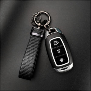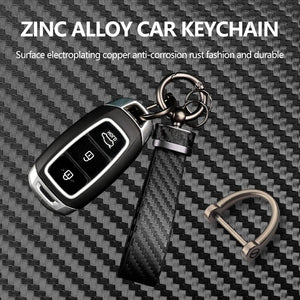 Leather Car Keychain - Carbon Fiber Interior Key Fob with Anti-Lost D-Ring - Car Accessory Key Ring (Black)