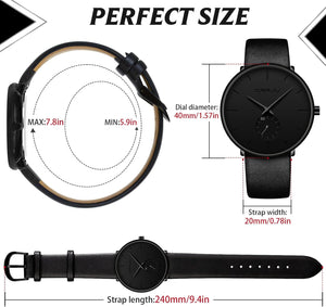 Mens Watches Ultra-Thin Minimalist Waterproof-Fashion Wrist Watch for Men Unisex , Black