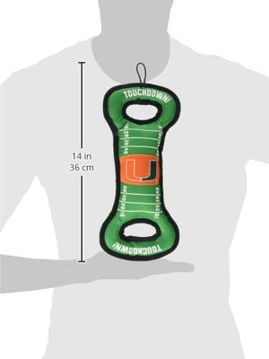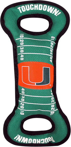 NCAA Football Field Dog Toy with Squeaker. - Miami Hurricanes - for Tug, Toss, and Fetch. - Tough& Durable PET Toy