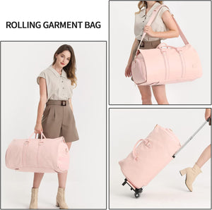 Rolling Garment Bag, Rolling Duffle Bag with Wheels with Shoe Pouch Carry On Bag Weekender Bags Garment Duffel Bag for Women-Pink