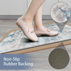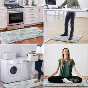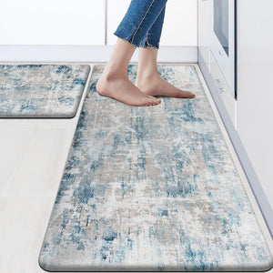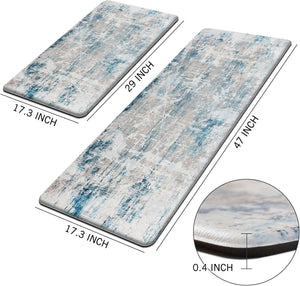 Set of 2 Blue Kitchen Mats for Floor Cushioned Modern Abstract Kitchen Rugs, Blue