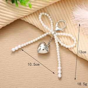 Silver Heart Pearl Bow Keychain Y2k Bowknot Keyring Sweet Bag Car Keys Charms Accessories for Women Girls