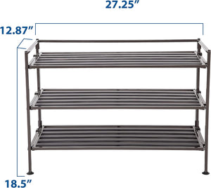 {"id":8275801407657,"title":"Sturdy Freestanding Storage Shelf for Bedroom, Closet, Entryway, Dorm Room Organizer Stackable Durable Metal Shoe Rack Espresso Slat, 3-Tier","handle":"sturdy-freestanding-storage-shelf-for-bedroom-closet-entryway-dorm-room-organizer-stackable-durable-metal-shoe-rack-espresso-slat-3-tier","description":"\u003cp\u003eThis 3-tier shoe rack measures 27.25\" W x 12.75\" D x 18.5\" H and can hold up to 12 pairs of shoes, including extra storage space underneath. Its stackable design allows for vertical storage by combining multiple units. The sturdy metal frame can support up to 30 lbs per shelf, with durable resin slats for added stability. It features easy, tool-free assembly. The rack is compatible with other Seville Classics Interlock 3-tier racks for custom storage solutions.\u003c\/p\u003e","published_at":"2024-09-19T09:18:52-05:00","created_at":"2024-09-19T09:18:52-05:00","vendor":"Shop Premium","type":"furniture","tags":["Furniture","Home Office Furniture","ultimate"],"price":6000,"price_min":6000,"price_max":6000,"available":true,"price_varies":false,"compare_at_price":null,"compare_at_price_min":0,"compare_at_price_max":0,"compare_at_price_varies":false,"variants":[{"id":44684908200105,"title":"Default Title","option1":"Default Title","option2":null,"option3":null,"sku":"SPY - 2692","requires_shipping":true,"taxable":true,"featured_image":null,"available":true,"name":"Sturdy Freestanding Storage Shelf for Bedroom, Closet, Entryway, Dorm Room Organizer Stackable Durable Metal Shoe Rack Espresso Slat, 3-Tier","public_title":null,"options":["Default Title"],"price":6000,"weight":454,"compare_at_price":null,"inventory_management":"shopify","barcode":"","requires_selling_plan":false,"selling_plan_allocations":[]}],"images":["\/\/shoppremium.us\/cdn\/shop\/files\/0-2024-09-19T220919.974.jpg?v=1726755477","\/\/shoppremium.us\/cdn\/shop\/files\/2-2024-09-19T220919.845.jpg?v=1726755477","\/\/shoppremium.us\/cdn\/shop\/files\/3-2024-09-19T220919.940.jpg?v=1726755477","\/\/shoppremium.us\/cdn\/shop\/files\/4-2024-09-19T220919.814.jpg?v=1726755477","\/\/shoppremium.us\/cdn\/shop\/files\/1-2024-09-19T220919.701.jpg?v=1726755477"],"featured_image":"\/\/shoppremium.us\/cdn\/shop\/files\/0-2024-09-19T220919.974.jpg?v=1726755477","options":["Title"],"media":[{"alt":null,"id":32690256183465,"position":1,"preview_image":{"aspect_ratio":1.09,"height":1376,"width":1500,"src":"\/\/shoppremium.us\/cdn\/shop\/files\/0-2024-09-19T220919.974.jpg?v=1726755477"},"aspect_ratio":1.09,"height":1376,"media_type":"image","src":"\/\/shoppremium.us\/cdn\/shop\/files\/0-2024-09-19T220919.974.jpg?v=1726755477","width":1500},{"alt":null,"id":32690256216233,"position":2,"preview_image":{"aspect_ratio":1.04,"height":1442,"width":1500,"src":"\/\/shoppremium.us\/cdn\/shop\/files\/2-2024-09-19T220919.845.jpg?v=1726755477"},"aspect_ratio":1.04,"height":1442,"media_type":"image","src":"\/\/shoppremium.us\/cdn\/shop\/files\/2-2024-09-19T220919.845.jpg?v=1726755477","width":1500},{"alt":null,"id":32690256249001,"position":3,"preview_image":{"aspect_ratio":1.063,"height":1411,"width":1500,"src":"\/\/shoppremium.us\/cdn\/shop\/files\/3-2024-09-19T220919.940.jpg?v=1726755477"},"aspect_ratio":1.063,"height":1411,"media_type":"image","src":"\/\/shoppremium.us\/cdn\/shop\/files\/3-2024-09-19T220919.940.jpg?v=1726755477","width":1500},{"alt":null,"id":32690256281769,"position":4,"preview_image":{"aspect_ratio":1.001,"height":1499,"width":1500,"src":"\/\/shoppremium.us\/cdn\/shop\/files\/4-2024-09-19T220919.814.jpg?v=1726755477"},"aspect_ratio":1.001,"height":1499,"media_type":"image","src":"\/\/shoppremium.us\/cdn\/shop\/files\/4-2024-09-19T220919.814.jpg?v=1726755477","width":1500},{"alt":null,"id":32690256314537,"position":5,"preview_image":{"aspect_ratio":1.119,"height":1341,"width":1500,"src":"\/\/shoppremium.us\/cdn\/shop\/files\/1-2024-09-19T220919.701.jpg?v=1726755477"},"aspect_ratio":1.119,"height":1341,"media_type":"image","src":"\/\/shoppremium.us\/cdn\/shop\/files\/1-2024-09-19T220919.701.jpg?v=1726755477","width":1500}],"requires_selling_plan":false,"selling_plan_groups":[],"content":"\u003cp\u003eThis 3-tier shoe rack measures 27.25\" W x 12.75\" D x 18.5\" H and can hold up to 12 pairs of shoes, including extra storage space underneath. Its stackable design allows for vertical storage by combining multiple units. The sturdy metal frame can support up to 30 lbs per shelf, with durable resin slats for added stability. It features easy, tool-free assembly. The rack is compatible with other Seville Classics Interlock 3-tier racks for custom storage solutions.\u003c\/p\u003e"}