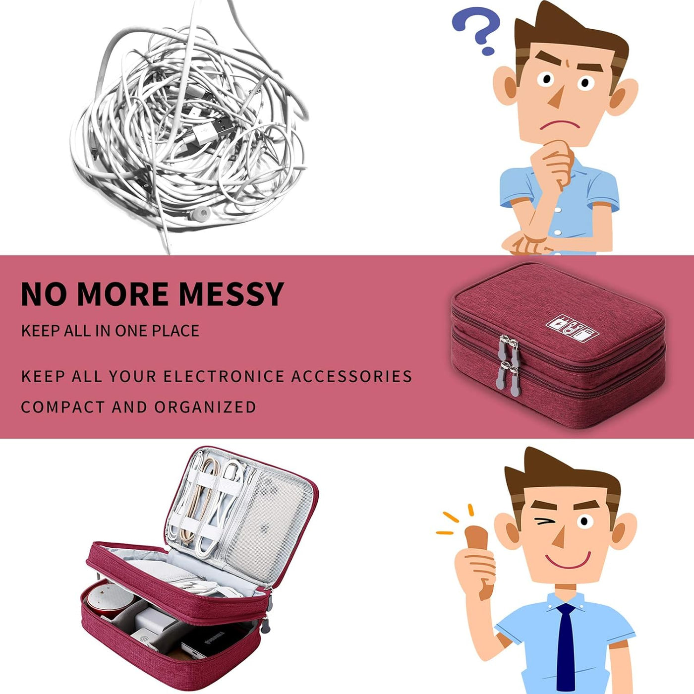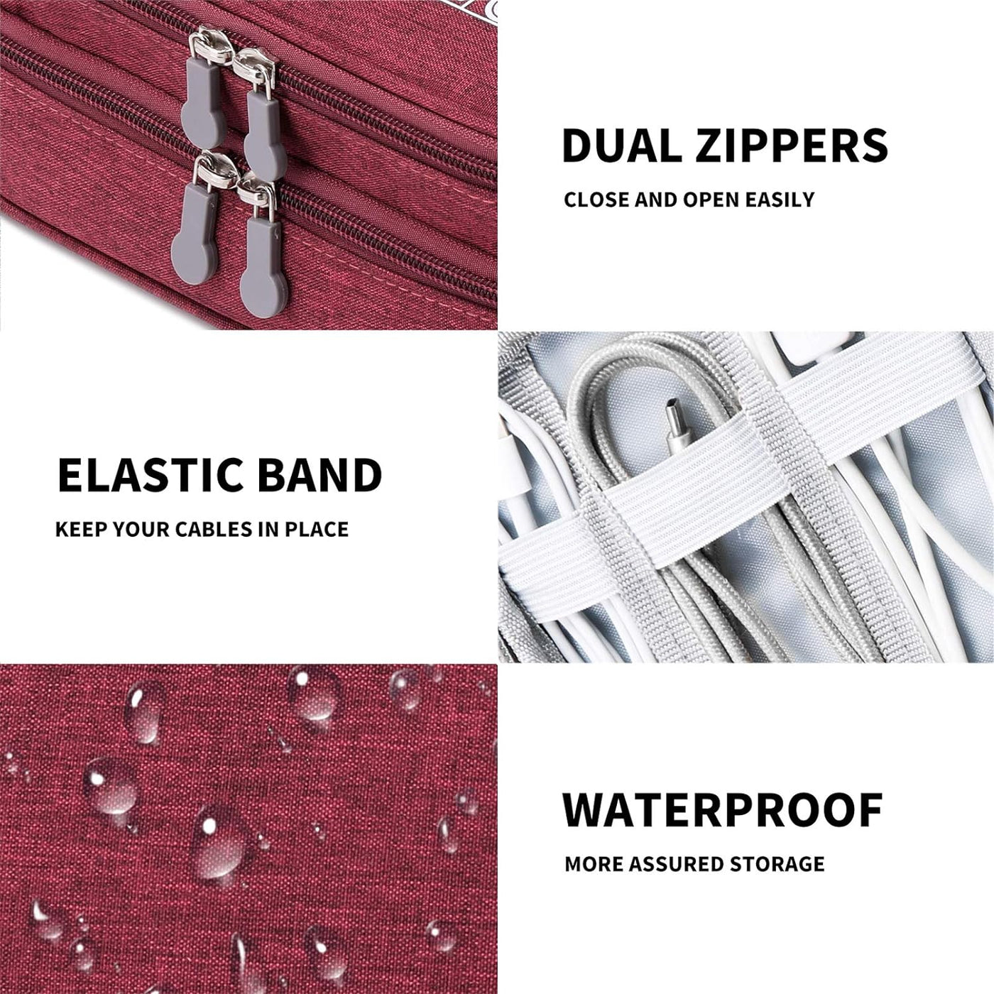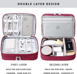 Travel Cable Organizer Bag, Electronic Accessories Case Portable Double Layer Cable Storage Bag , Small Red