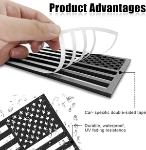 USA Embossed Stainless Steel Metal Flag for Cars Trucks (3.12" x 2", Black & Chrome set Left & Right)