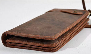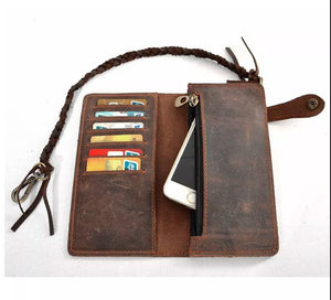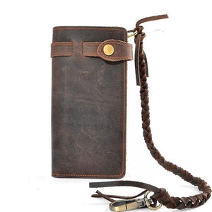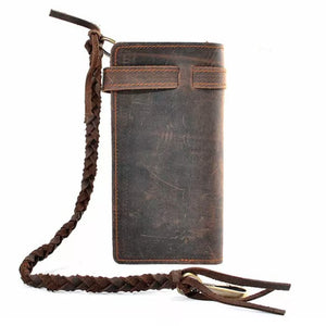 Vintage Men's Leather Card Holder Long Chain Trucker Wallet Biker Billfold