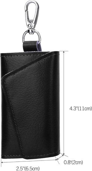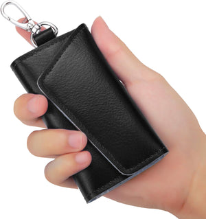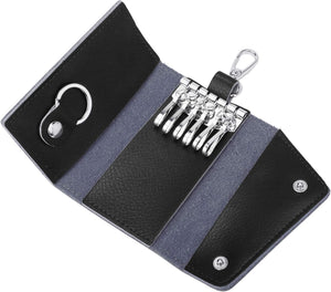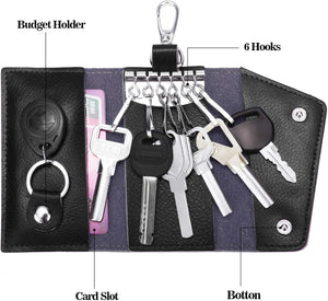 Compact Leather Car Key Case, Key Holder Key Organizer Wallet, With 6 Hooks(Black)